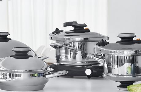 The specially designed cookware that enables fast absorption as well as heat distribution. An array of other innovations ensures perfect temperatures at all times, so your food cooks perfectly, inside and out. Specialists in fatless and waterless cooking.